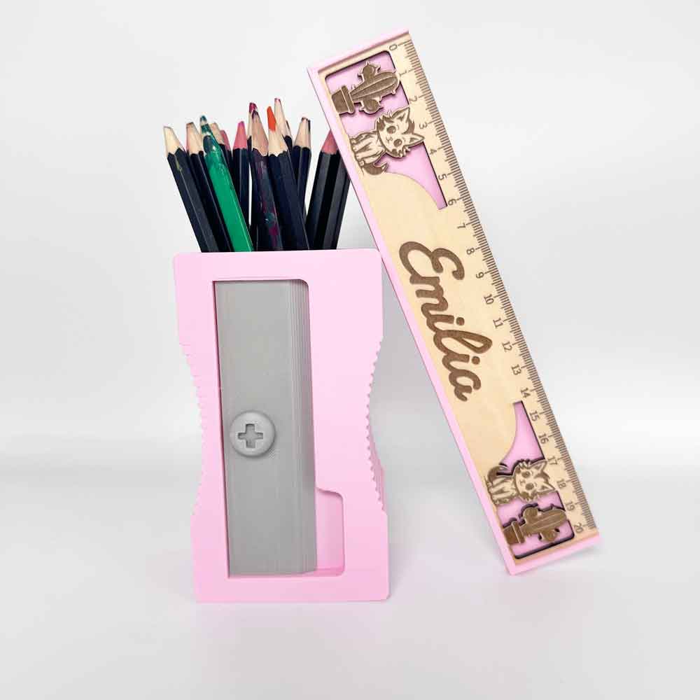 Set 1 | Lineal 20 cm + farblich passender Stiftehalter |