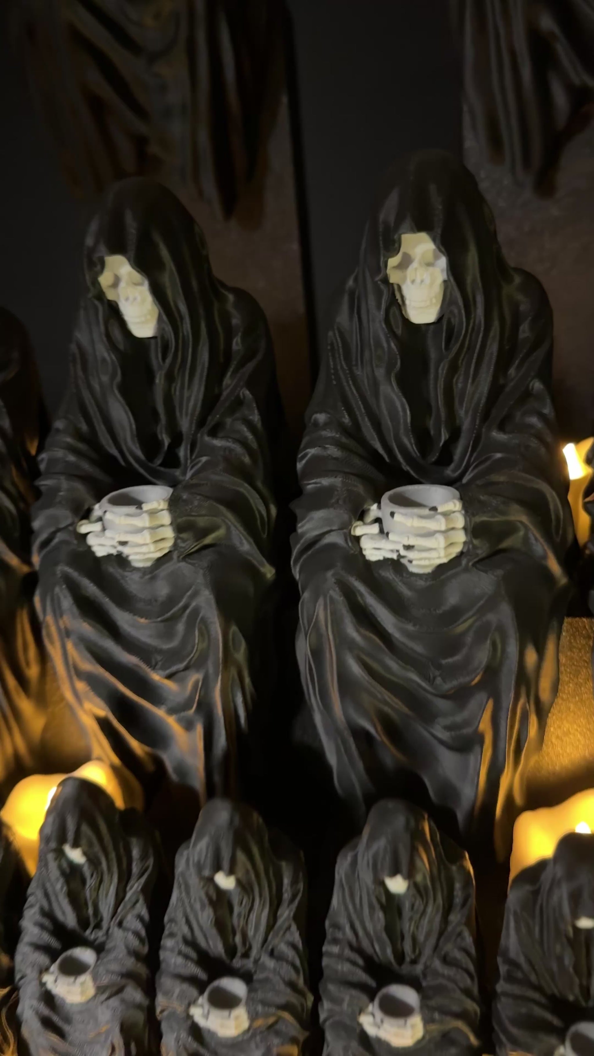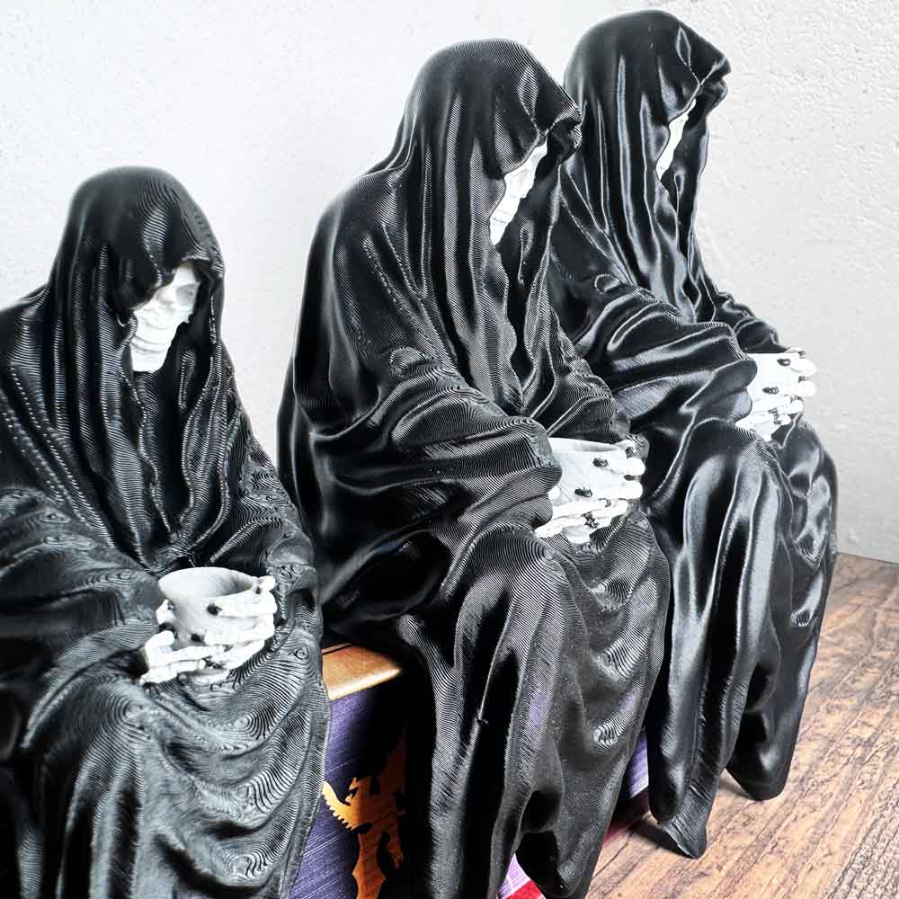 Ein düsteres, aber charmantes Detail für deine Leseecke: der sitzende Sensenmann mit Teetasse. Inspiriert von der legendären Suriel-Figur (ACOTAR), verbindet diese Statue gruselige Eleganz mit einem humorvollen Twist.