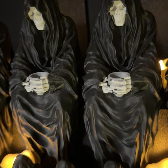 Sensenmann Figur mit Teetasse – Bücherregal Deko | Gothic Fantasy Figur | Geschenk für Leser & Sammler