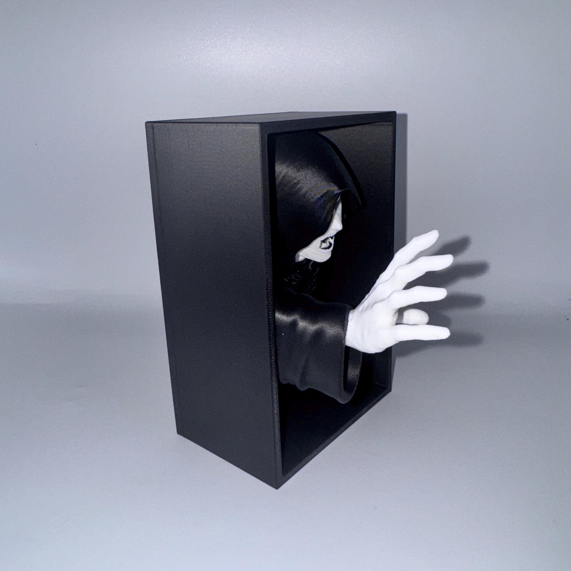 Der Void Reaper Book Nook ist dein Tor in eine dunkle Welt voller Geheimnisse, Fantasie und morbider Ästhetik. Dieses handgefertigte Regal-Diorama zeigt einen detaillierten Sensenmann (Void Reaper) mit düsterem Totenschädel und Kapuze – perfekt für alle, die düstere Fantasy, Gothic-Deko oder Halloween-Atmosphäre lieben. Ein echtes Statement-Piece für dein Regal! 🖤